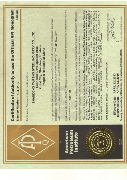 API SPEC 5CT Certificate